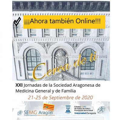 WEBINAR DE LAS XXI JORNADAS DE LA SOCIEDAD ARAGONESA DE MEDICINA GENERAL Y FAMILIA EN SEPTIEMBRE. 21-25 septiembre de 2020 18 septiembre, 202027 junio, 2022 SEMG Aragón Entrar Noticias