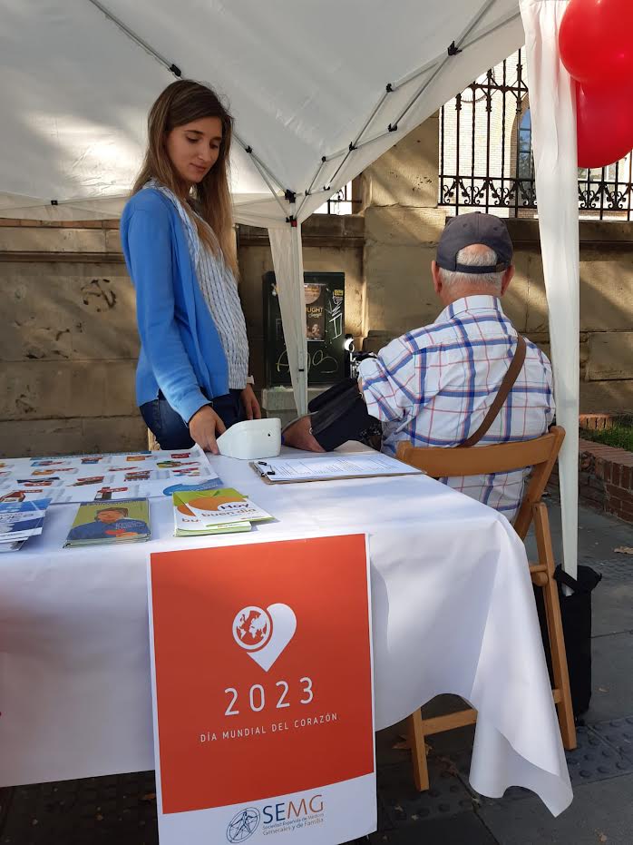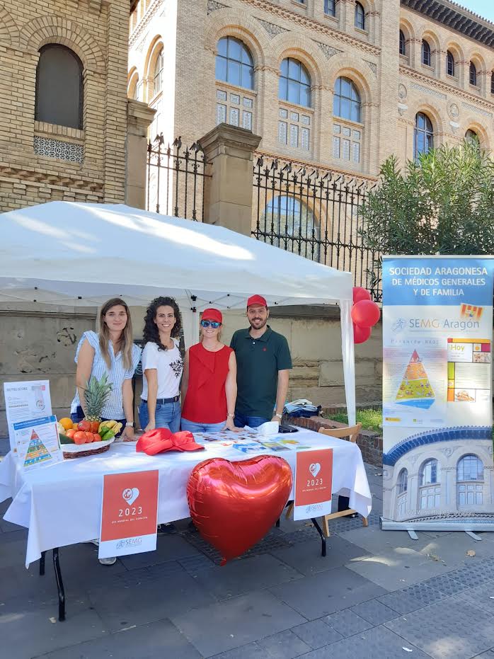 SEMG Aragón continúa con su proyecto de estilos de vida saludable y formación en RCP poniendo un punto informativo con motivo del Día mundial del Corazón (29 de septiembre). Los médicos de familia que forman parte de la citada sociedad científica en Zaragoza instalaron un puesto informativo en la calle para concienciar y sensibilizar sobre la importancia de tener hábitos de vida saludable a los ciudadanos que se acercaron. Los doctores también aprovecharon para hacerles tomas de tensión arterial y les impartieron conocimientos básicos sobre reanimación cardiopulmonar (RCP).